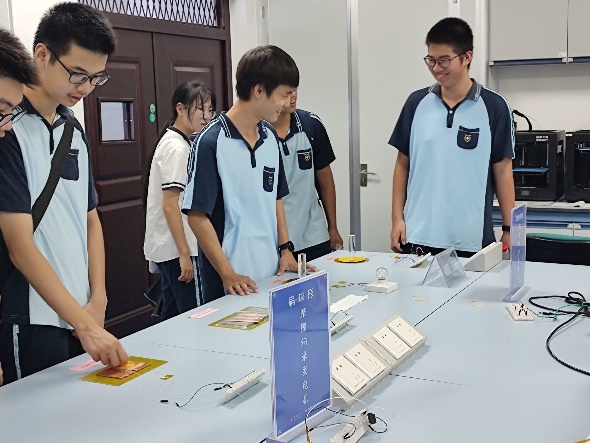 7月11日那坡中学的初中生们前来研学,在suncitygroup太阳新城九楼的天象厅外,陈列着许多由suncitygroup太阳新城师生参与研发的作品,志愿者向同学们详细介绍了公司参与的中国空间站上探测器项目,suncitygroup太阳新城主导研制的X射线偏振探测器(CXPD立方星)以及蓝色能源实验室研发的摩擦发电机。同学们近距离感受到了科技之美,埋下“科研的种子”。