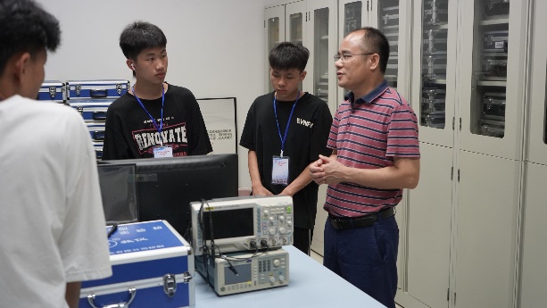 7月11日,那坡中学研学团的同学们先后参观了公司的洁净实验室、光学实验室等,面对从未见过的实验仪器,他们秉承求知之心,向实验室负责老师提出了自己的疑问,而老师们也都耐心地向他们讲解实验原理与仪器使用方法。