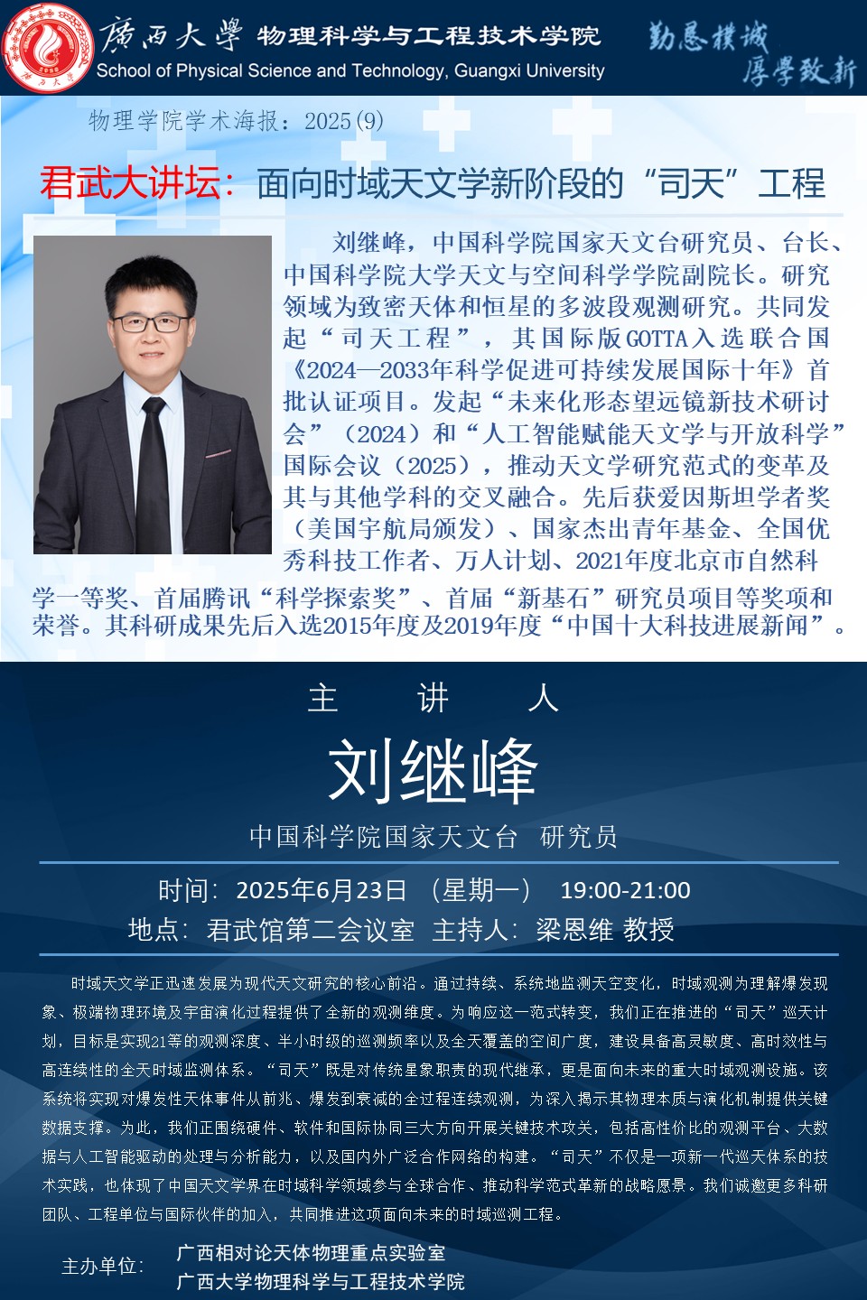 上一篇:2025年学术报告系列之10:Gamma-ray bursts, fast X-ray transients, and fast radio bursts: an exciting era of multi-wavelength, multi-messenger, transient astrophysics