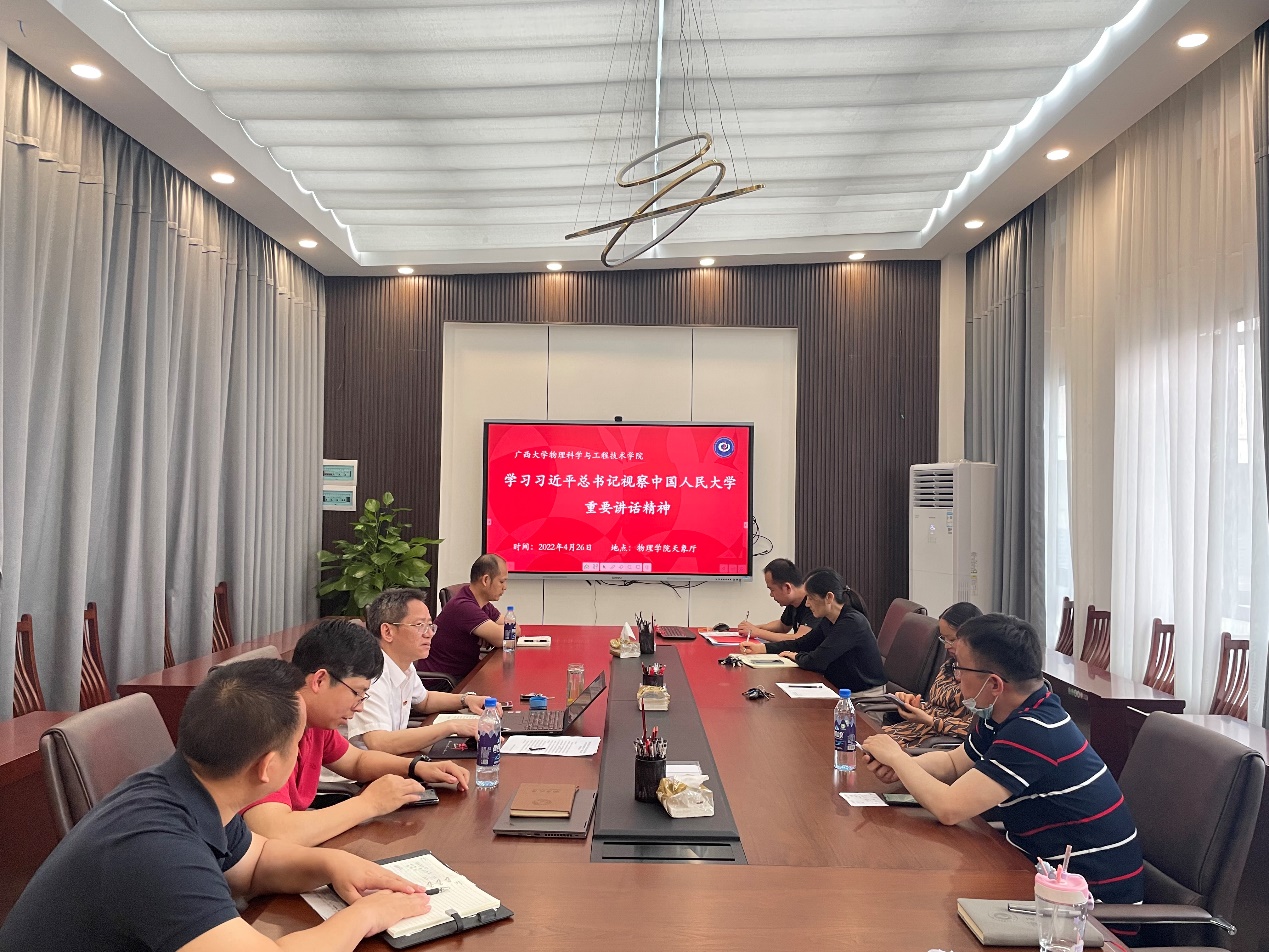 4月27日,公司组织师生通过中心组理论学习、主题党日活动、主题团日活动、观看视频、交流研讨、发表百字谈等线上线下相结合的形式,学习热议习近平总书记在中国人民大学考察时的重要讲话精神,全院范围内掀起了学习热潮。