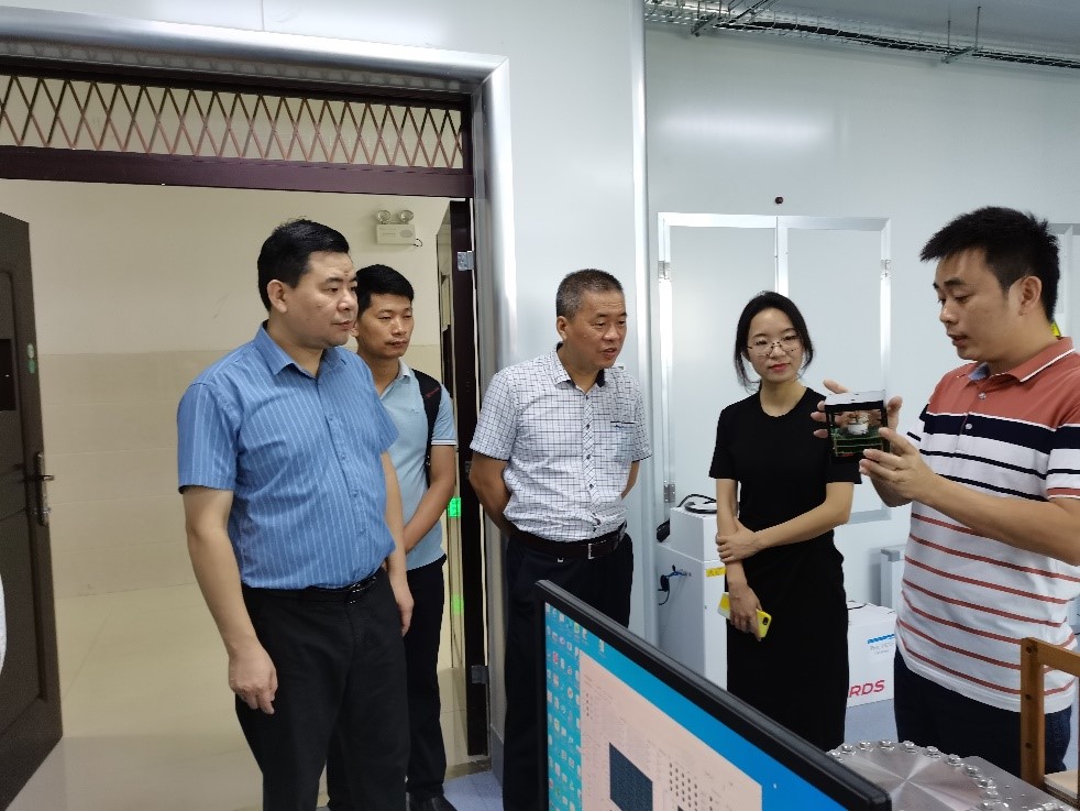 肖剑荣经理一行首先前往公司洁净实验室、物理实验实训中心、蓝色能源实验室、空间粒子探测实验室进行了实地考察调研。