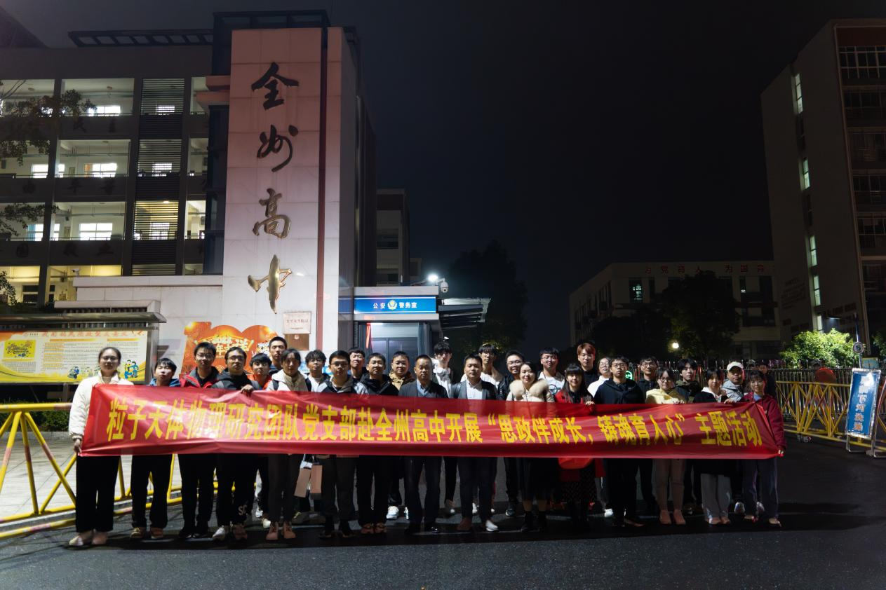 为发挥党支部的模范引领作用,加强对青少年的思想政治教育,12月3日,粒子天体物理研究团队党支部成员赴全州高中开展了一场题为“思政伴成长,铸魂育人心”主题活动。委副书记蒋津辉,副经理、粒子天体物理研究团队党支部书记刘宏邦及部分员工党员参加了活动。