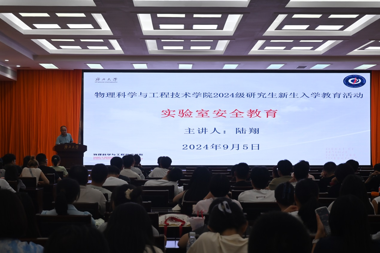 2024年9月4日与9月5日,公司陆翔副经理在玉林厅分别为2024级全体本科生、研究生新生开展实验室安全教育培训,实验中心潘智毅副主任参加。