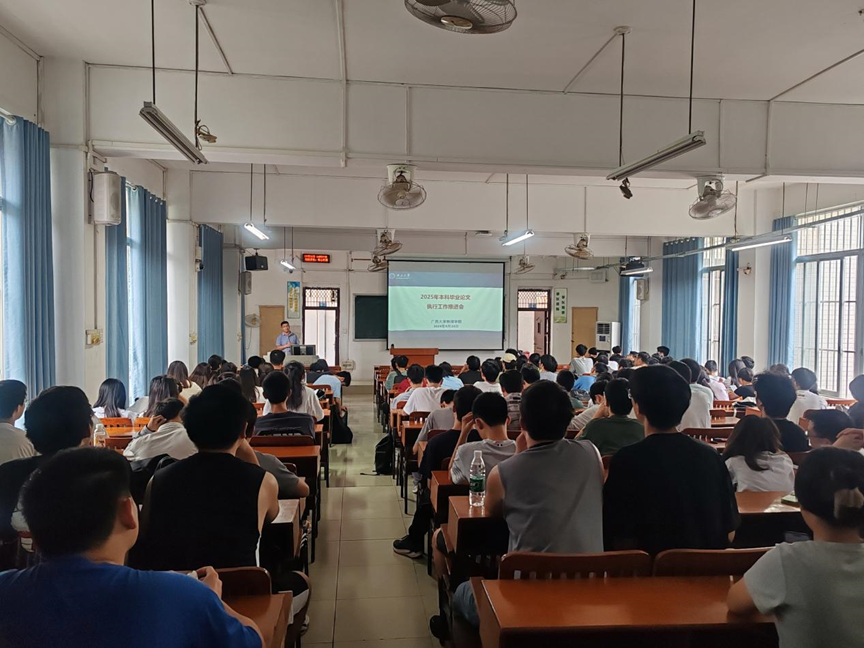 会上,曹盛老师对2025届本科毕业设计(论文)工作的整体安排进行了全面介绍。他指出,所有本科生必须遵循《suncitygroup太阳新城普通本科生毕业设计(论文)管理规定》及相关实施细则,确保选题具有显著的理论意义与科学价值,并符合专业的培养目标。