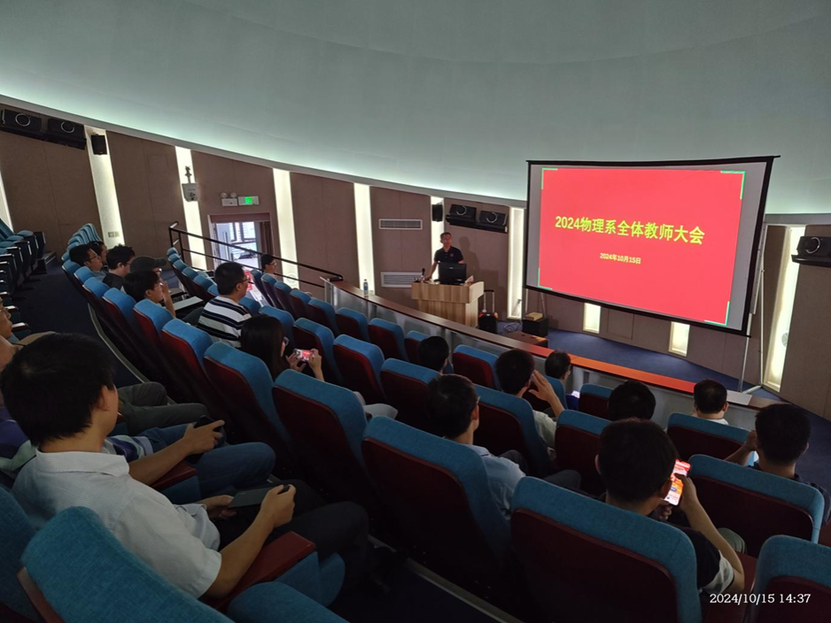 2024 年 10 月 15 日下午,公司物理系召开 2024 年全系教师大会。会议主要议题为总结教学与教研成果、剖析现存问题以及规划未来发展方向。会议由系主任梁毅主持,公司教学副经理林达斌出席,物理系副主任刘海镇、黄永波、黎光旭及全系老师参加会议。