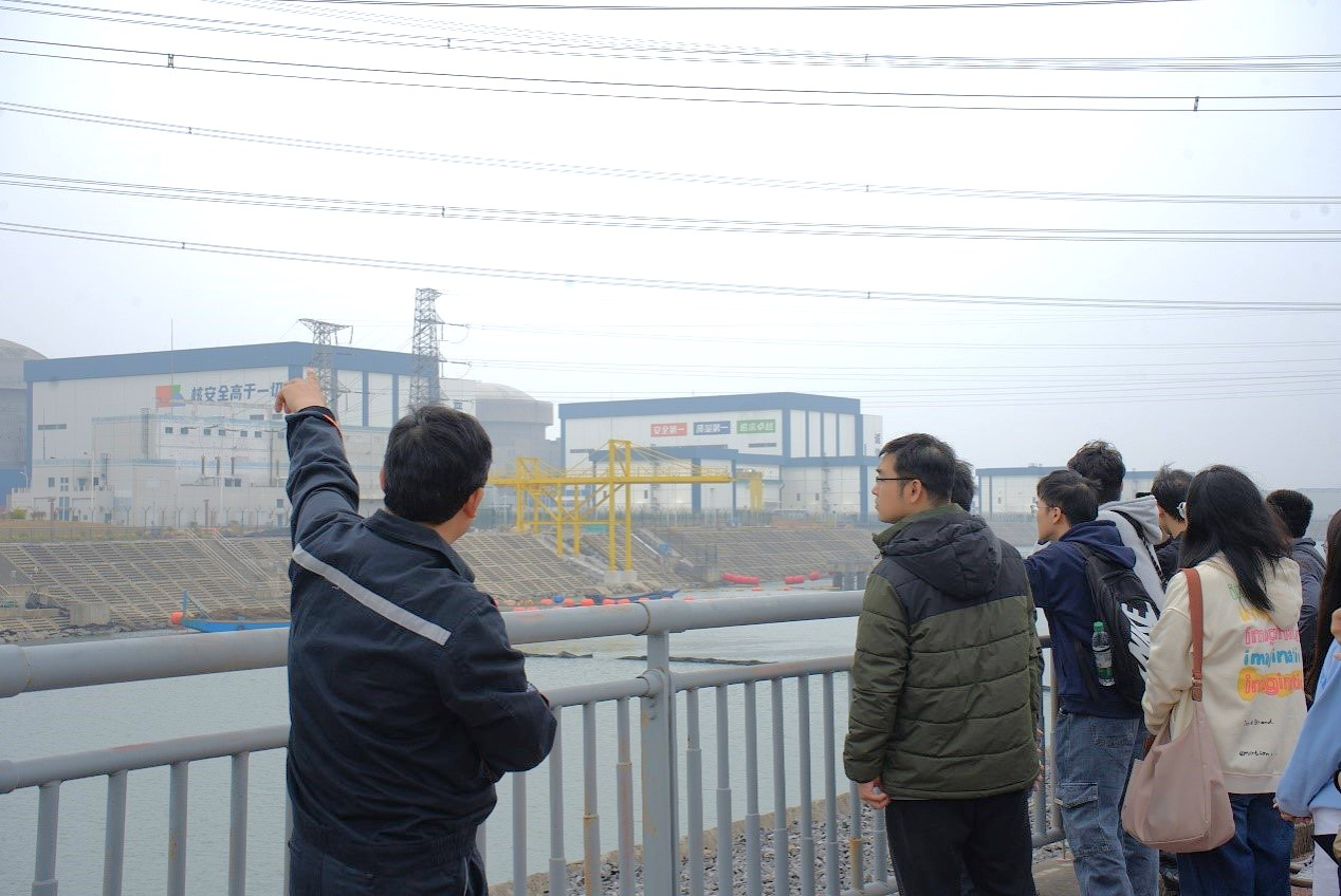 接着,一行人来到取水明渠观景平台,近距离参观了防城港核电站内的各个厂房。