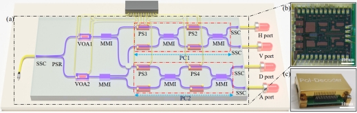 图1: (a) 硅基解码器芯片示意图。所有器件都在标准硅光子技术平台上制造。