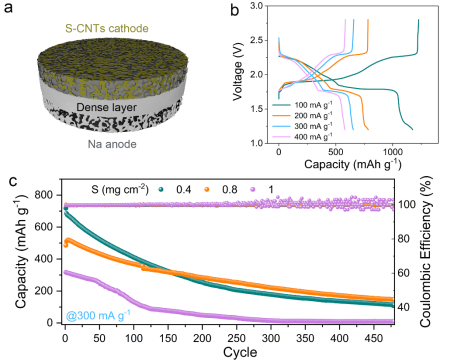 本研究通过Al离子掺杂提高了NASICON结构Na3.4Zr2(Si0.8P0.2O4)3 (NZSP)固体电解质的离子电导率,在50oC下离子电导率达到4.43 ´ 10-3 S cm-1,并设计了具有独特一体化结构的电解质,由中间薄的致密层和两侧多孔层构成,有效地解决了固态电池电解质/电极界面接触差的问题,实现了在50oC下稳定运行的高性能固态钠硫电池。这项工作为改善固体电解质离子电导率和降低固态电池界面阻抗提供了新颖而有效的方法,在电动汽车电源和固定式储能电站等方面具有潜在的应用。
