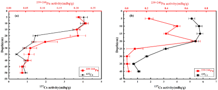 团队为了评估桂林龙脊梯田土壤侵蚀,测量了龙脊梯田土壤中137Cs和239+240Pu的比活度以及240Pu/239Pu原子比,研究了龙脊梯田土壤中239+240Pu和137Cs的空间分布。研究发现该地区土壤中239+240Pu和137Cs均来自全球大气沉降,表层土壤中239+240Pu和137Cs的比活度表现出非常相似的随海拔的升高先升高后降低的分布趋势。土壤柱样中239+240Pu和137Cs的比活度在耕层中趋于均匀分布,在该深度以下呈指数下降。用239+240Pu和137Cs示踪法估算的龙脊梯田土壤侵蚀速率分别为5.44 t/(ha·a)和5.16 t/(ha·a),表明钚可以替代137Cs作为土壤侵蚀研究的理想示踪剂。地形特征是影响龙脊梯田土壤中钚和137Cs分布及土壤侵蚀的主要因素。研究结果提供了中国稻作梯田土壤中钚同位素的比活度数据,首次验证了钚应用于梯田土壤侵蚀研究的可行性,为梯田土壤侵蚀研究提供了技术参考。