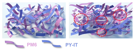 全聚合物有机太阳能电池(all-PSCs)因良好的形态稳定性、优异的机械灵活性和光稳定性等显著优点吸引了越来越多人的研究兴趣。但是,由于聚合物的长分子链会互相纠缠,光电转换效率(PCE)仍落后于基于小分子受体的聚合物有机太阳能电池。因此怎样优化全聚合物活性层的形貌来实现高效的全聚合物有机太阳能电池仍然是我们面临的首要问题。针对以上问题,公司薄膜光伏团队提出通过第三组分调控活性层给受体相分布从而抑制载流子复合的策略,进一步提升了all-PSCs光电转换效率。