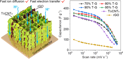 该成果发表在国际知名期刊《Chemical Engineering Journal》(IF:15.1)上,题目为"Vertical porous Ti3CNTx/rGO hybrid aerogels with enhanced capacitive performance",suncitygroup太阳新城为第一通讯单位。
