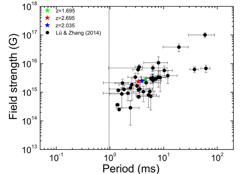 图3. 推断出的不同红移下的GRB 240529A的奇异星中心引擎的参数。